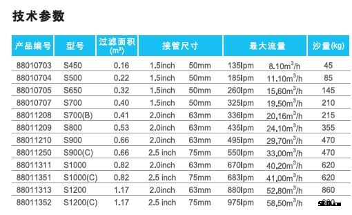 (S450-1200)側出型沙缸配備多功能6向夾式閥門,全采用ABS材料